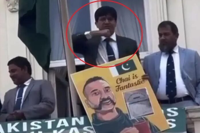 ലണ്ടനിൽ പ്രതിഷേധിച്ച ഇന്ത്യക്കാർക്കുനേരെ കഴുത്തറക്കുമെന്ന് ആംഗ്യംകാണിച്ച് പാക്കിസ്‌ഥാനിലെ ഉന്നത ഉദ്യോഗസ്ഥന്റെ പ്രകോപനം – വിഡിയോ